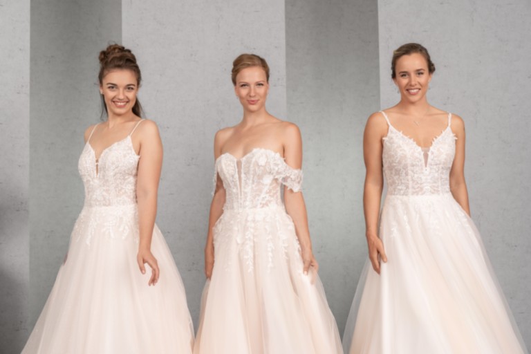 In unseren Brautkleider Kollektionen findet ihr alle Stilrichtungen von Klassisch bis Vintage und Boho. Verspielte Princesskleider und klassische A-Linien Kleider mit großer Schleppe, raffinierte und detailverliebte Vintage & Boho Modelle, und schlichte Kleider für das Standesamt haben eines gemeinsam: Erlesene Stoffe und edle Spitzen, zarte Stickereien und glitzernde Perlen werden bei unseren Modellen von Hand zu einzigartigen Brautkleidern mit perfekter Paßform verarbeitet.